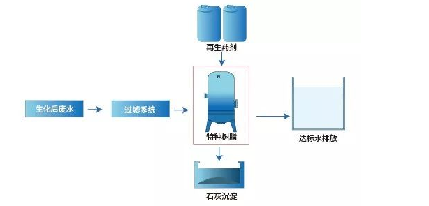 科海思根據(jù)項目具體情況,結合自身技術和Tulsimer?A-107樹脂的性能優(yōu)勢,采用精密過濾器+除磷樹脂系統(tǒng),通過選擇性吸附磷酸鹽釋放氫氧根離子,從而達到深度除磷的目的。