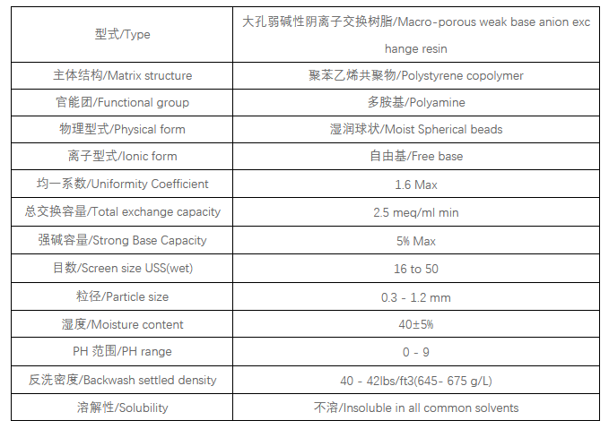 主要應用在強酸和弱酸的去除,并且再生效率。它可以在較大的PH范圍和溫度條件下運行,而且其球面是無裂紋的,因此它表現出的球強度。