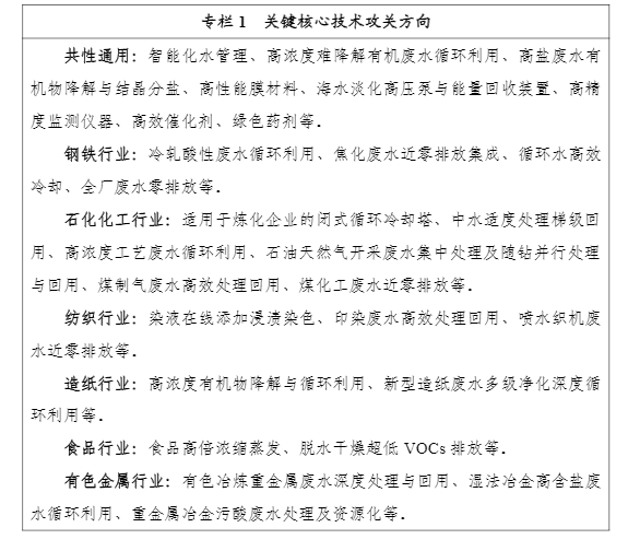 圍繞行業(yè)節(jié)水技術(shù)難點(diǎn)和裝備短板加強(qiáng)協(xié)同攻關(guān),著力突破高濃度有機(jī)廢水和高鹽廢水處理與循環(huán)利用、高性能膜材料、高效催化劑、綠色藥劑、智能監(jiān)測(cè)與優(yōu)化控制等節(jié)水關(guān)鍵共性技術(shù)。