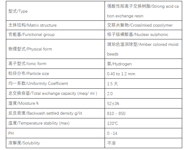 Tulsimer ?T-42是特級強酸型離子交換樹脂,氫 H+/鈉 Na+陽離子交換樹脂, 是一款有較的交換容量 ,并同時擁有物理及化學穩定品質。